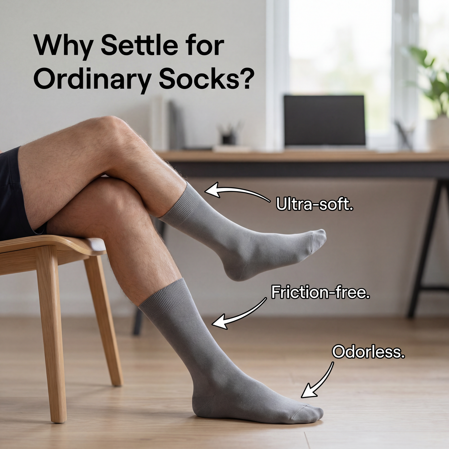 Manchetten holder blidt — ingen elastik, der graver sig ind i læggen om eftermiddagen. Ingen kløe. Ingen behov for at rette på dem.
